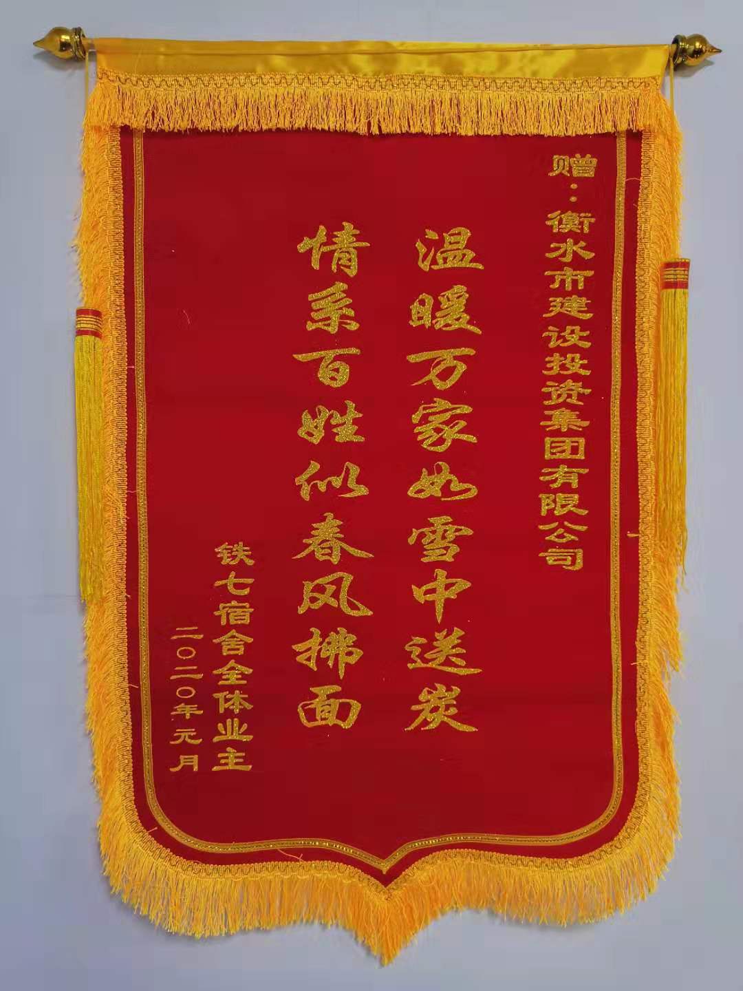 2020年1月8日,北京鐵路局第七宿舍居民代表向市建投集團(tuán)贈(zèng)送“情暖萬(wàn)家如雪中送炭,情系百姓似春風(fēng)拂面”錦旗,感謝市建投集團(tuán)心系百姓、排憂解難,從根本上解決了他們小區(qū)多年的排污“老大難”問(wèn)題。集團(tuán)總經(jīng)理宋立民、副董事長(zhǎng)張玉高代表集團(tuán)接受了錦旗。