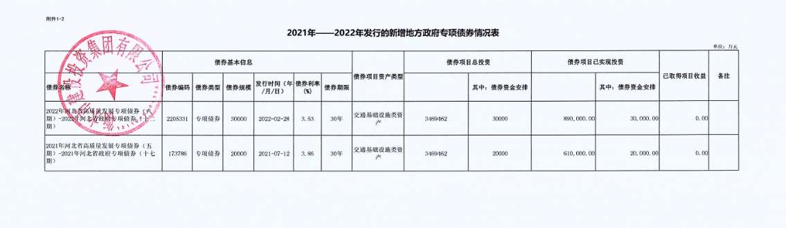 2021年—2022年發(fā)行的新增政府一般債券存續(xù)期信息公開
